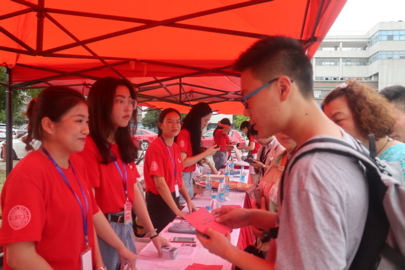 随着第一位新生的到来,迎新处逐渐忙碌了起来,办事桌前常常排着小长队,志愿者们也有条不紊地为新生办理相关事务,帮助他们有序高效地完成报到手续。现场开展了妙趣横生的答题活动,题目涉及爱国古诗词和文学常识,新生们跃跃欲试,摩拳擦掌。新生们还留下了与苏州大学的第一张合影。文学院院长曹炜、党委书记孙宁华、党委副书记兼副院长阴浩、学生工作办公室主任纪金平、团委书记胡萱、班主任张学谦老师也不时地与新生及家长进行交流。