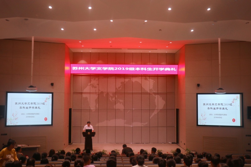 9月9日下午两点,苏州大学文学院2019级本科生开学典礼在金螳螂商学院报告厅(梦溪厅)举行。