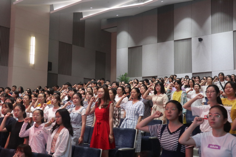 典礼的最后,现场所有2019级的同学们在倪裳同学的领誓下,进行庄严宣誓。