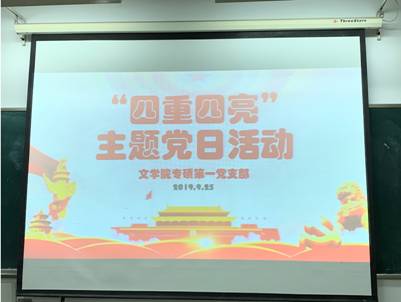 为贯彻落实《中共苏州大学委员会关于开展“不忘初心、牢记使命”主题教育的实施方案》的要求,9月23日,文学院专硕第一党支部在独墅湖校区1003#3203开展“四重四亮”主题党日活动,支部全体党员参加了本次会议,支部书记崔琳萱主持了本次会议。
