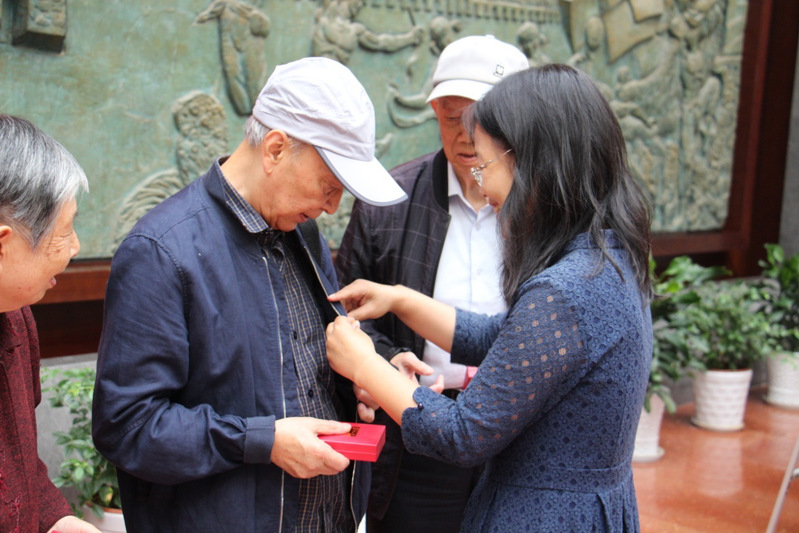 参观过后,院党委为党龄满50年的老党员举行了颁发奖章仪式。孙宁华书记宣读了《关于对党龄满50年老党员颁发荣誉纪念章的决定》,并亲手为老党员们进行了佩戴。