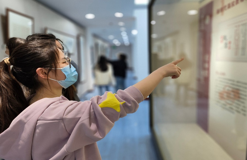 接着,在“风清气正,遵师德规范”板块,全体党员共同学习了《新时代高校教师职业行为十项准则》的具体要求和一桩桩引人深思、发人深省的警示案例,为全体党员敲响警钟。党员同志们跟随讲解员认真聆听讲解内容,不时驻足观看展板介绍。