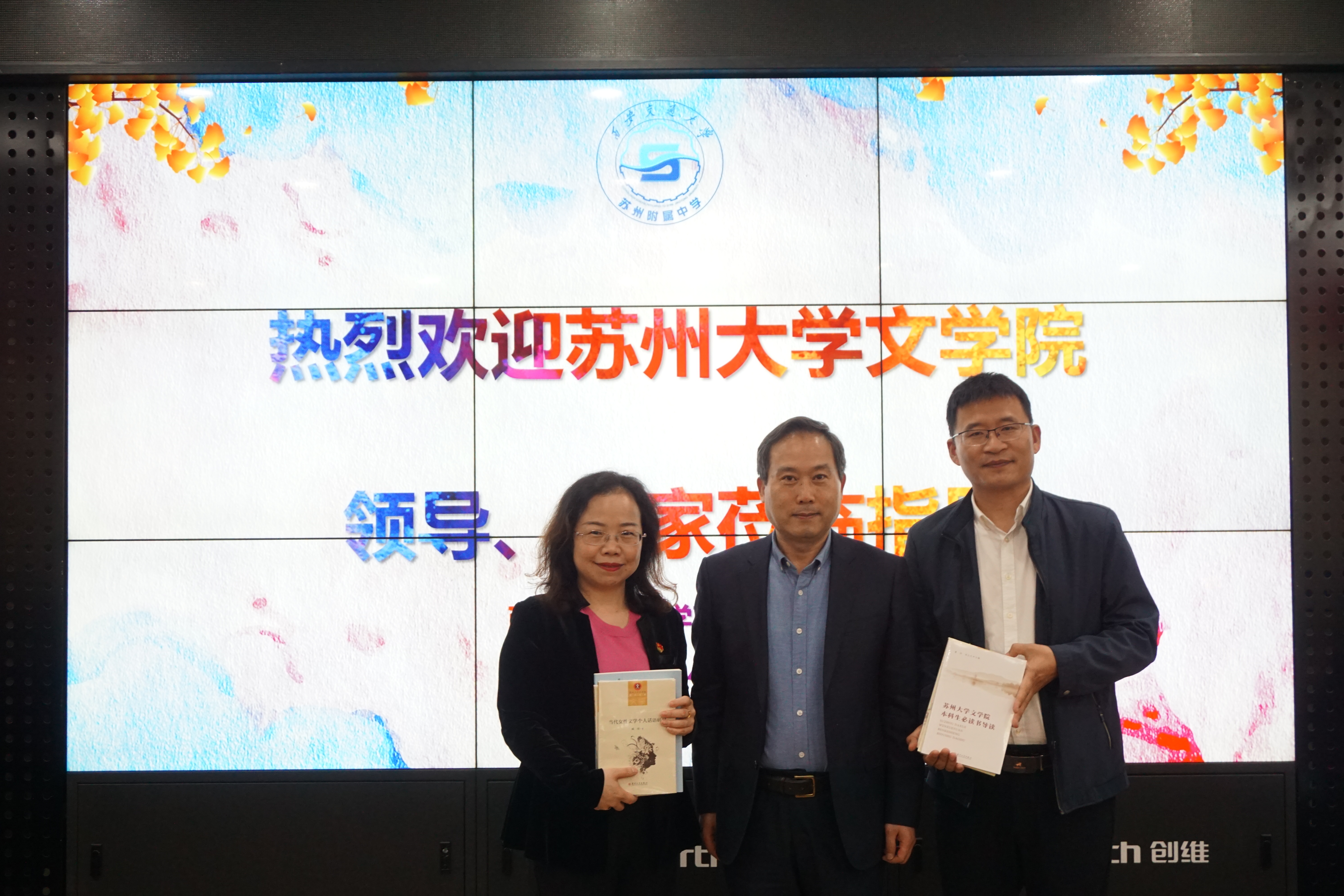 西安交通大学苏州附属中学校长、党委书记刘雁对苏州大学文学院的来访表示热烈欢迎,回顾了学校的创办历程,阐释了学校的办学理念,谈及了学校近几年高考所取得的喜人成绩以及展望了对未来发展的期许。