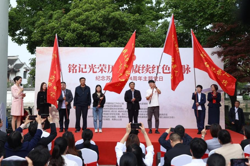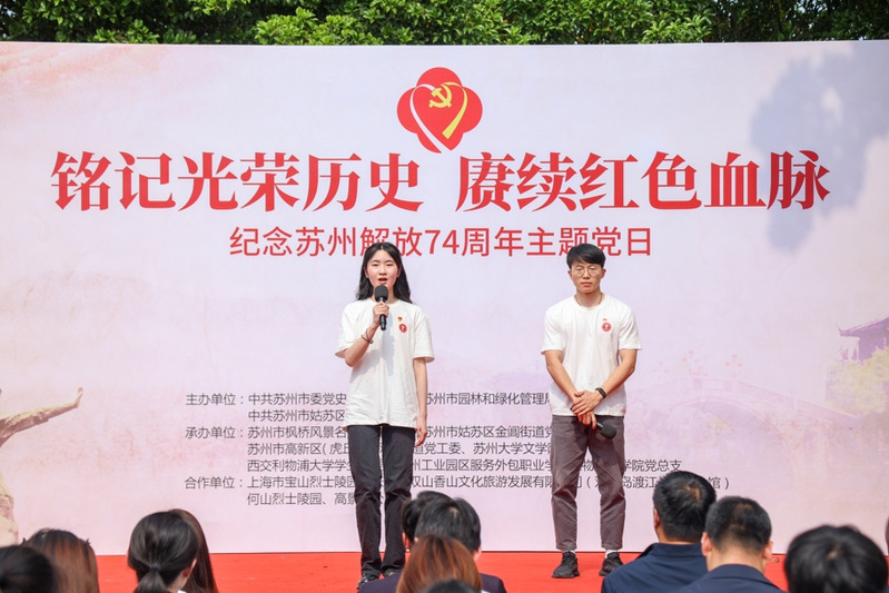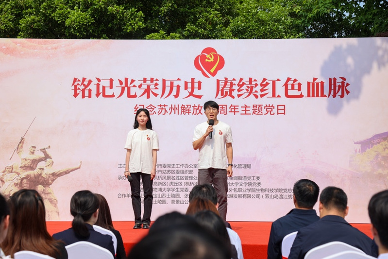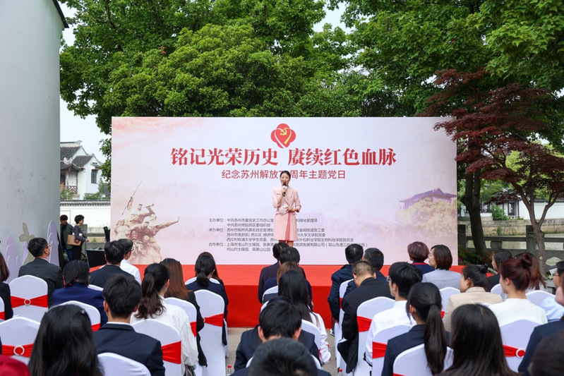苏州市委党史工办、市园林局、姑苏区委组织部等单位的老中青党员代表,以及来自苏州大学文学院等高校的青年党员和积极分子代表出席本次主题党日活动,共同赓续革命薪火,厚植家国情怀,提振干事创业精气神,自觉践行“强国复兴有我”的庄严承诺。