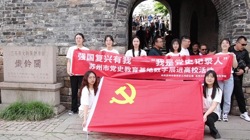 活动伊始,全体党员在铁铃关遗址前以党旗和党徽为见证,宣誓“强国复兴有我,我是党史记录人”。随后,支部党员前往关楼对面的铁铃关战斗史迹陈列馆参观学习。铁铃关战斗史迹陈列馆生动再现解放军解放苏州古城的战斗场景。1949年4月27日,人民解放军在铁岭关打响了解放苏州的第一枪,并经此从金门、阊门、平门、娄门入城,与国民党军展开激烈斗争,解放军严明的纪律、为民着想的理念、团结英勇的斗争精神深深感染着苏州人民,最终于6时40分人民解放军凭借自身顽强的意志与姑苏人民的帮助彻底解放了苏州古城。