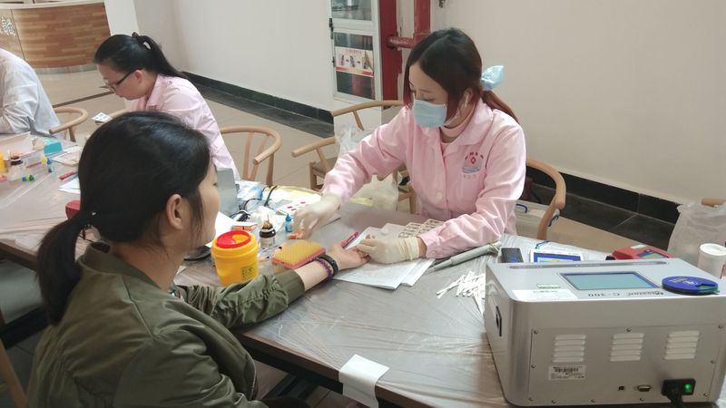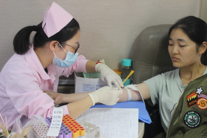 秋风习习,献血的同学们的热情却依然十分高涨。在五食堂的临时体检处,同学们在医护人员的指导下领取表格,并填写基本信息。医护人员核查身份证后,对献血者的血压、脉搏、健康状况等具体指标进行了检测,并提出了献血意见。通过检测的同学们就准备登上献血车进行献血。