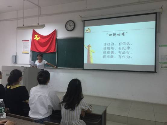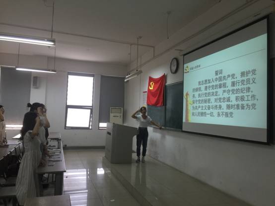三、重忆入党经历。组织党员回顾入党经历,支部党员钱冰雁同学讲述入党自己的故事,分享入党过程中的成长历程。“大一刚入学的时候,我首先向辅导员老师递交了入党申请书。一开始我对党的概念是模糊的,但通过后来党课学习,党在我心中变得明确。之后经过时间的考察,我通过了党支部层层严格的考核,终于成为一名中共党员。”支部其他党员也纷纷就自己的入党经历进行简单讨论,汲取前行力量。