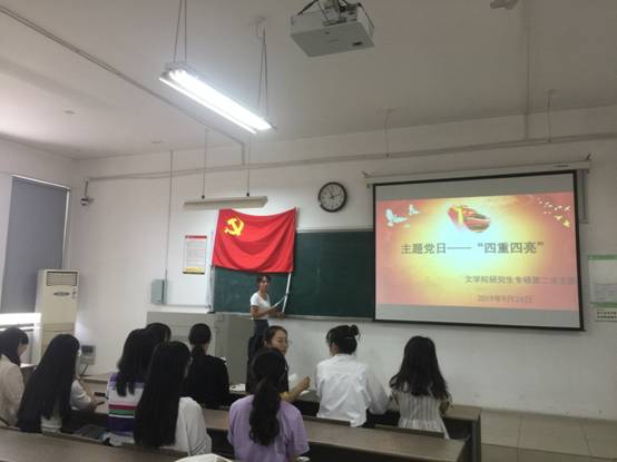 为了进一步贯彻学习 “不忘初心、牢记使命”主题教育,引导党员坚守初心使命,勇于担当作为,充分发挥先锋模范作用,积极响应在全校党员中开展“四重四亮”活动。文学院研究生专硕二支部全体党员于2019年9月24日上午开展“四重四亮”主题党日活动。
