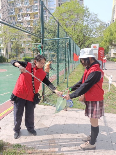 紧接着,志愿者们进行室外实践活动。志愿者们走进社区,分发反诈防非宣传单,对路人尤其是老年人科普了反诈的相关知识。除此之外,志愿者们还带领社区儿童进行清扫活动,和孩子们手拿垃圾夹,垃圾袋等卫生工具,发扬不怕脏、不怕苦、不怕累的精神,拾捡绿化带和道路路面上的垃圾,用实际行动传递和践行着雷锋精神。经过数小时的清扫,社区的环境卫生面貌焕然一新。志愿者们纷纷表示,他们在服务社会中获得了快乐,在志愿服务中体会到了“雷锋精神”的实质。