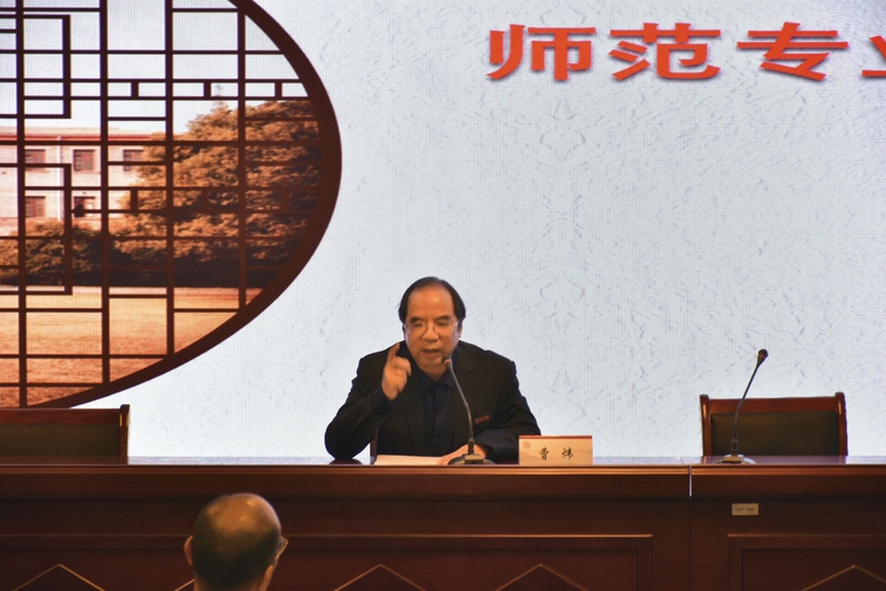 曹炜院长首先对出席本次会议的嘉宾表示感谢,然后从历史逻辑、当前逻辑、辉煌历史及存在的短板等几个方面阐述了文学院师范专业建设面临的机遇与挑战。
