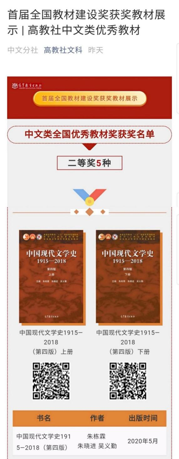 10月12日,首届全国教材建设奖正式公布,我院朱栋霖教授主编的《中国现代文学史》荣获中文类全国优秀教材奖二等奖。