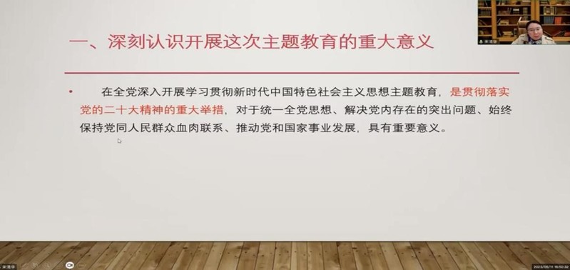 党课最后,宋书记提出我们要从“明确领导责任、强化督促指导、注重统筹兼顾、加强宣传引导”四个方面进行部署,切实加强党对主题教育的领导。学院将以主题教育为契机,紧密结合学习、工作和生活实际,围绕高校立德树人根本任务,团结带领全院党员自觉用习近平新时代中国特色社会主义思想凝心铸魂,踔厉奋发、勇毅前行。
