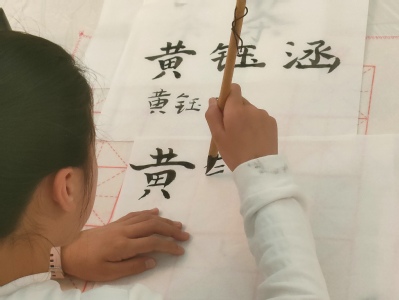 在最后的手工实践与课程总结环节中,主讲人时媛媛就笔墨的用法进行了现场教学,并手把手教小朋友们书写基础的汉字笔画与自己的名字。小朋友们对书法展现出浓厚的兴趣,在主讲人的指导下认真地将“横竖撇捺”与“茶”字书写在宣纸上,开始进行书法创作。创作过程中小朋友们加深了对汉字笔画与构造的理解,增添了对书法学习的兴趣。不少小朋友都表示自己非常喜欢书法,日后将继续练习书法,传承优秀传统文化。