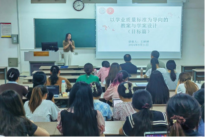 教育是强国建设、民族复兴之基。为深入学习贯彻习近平总书记在2024年全国教育大会上的重要论述精神,全面推进教育强国建设,大力弘扬教育家精神,加强新时代高素质专业化教师队伍建设,文学院积极践行“党建引领促发展,业务融合双提升”的工作理念,于2024年9月11日邀请了苏州工业园区星港学校中学语文高级教师、星港学校质量监测中心副主任、初中语文教研组组长王婷婷,为汉语言文学(师范)本科生和学科教学(语文)硕士生作题为《以学业质量标准为导向的教案与教学设计》的讲座。