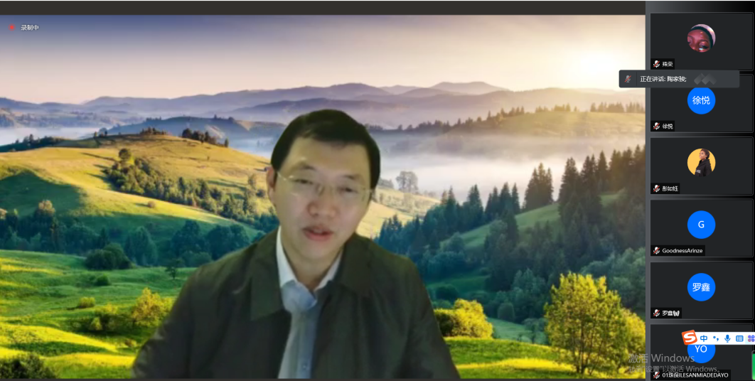 文学院海外教育中心主任陶家骏老师对拉各斯新生们表示热烈的欢迎,并肯定了三位尼日利亚的优秀学长学姐的进步与成长。他希望新生能够与各位老师多加交流,解决生活、学习中的困难,提高个人汉语水平。
