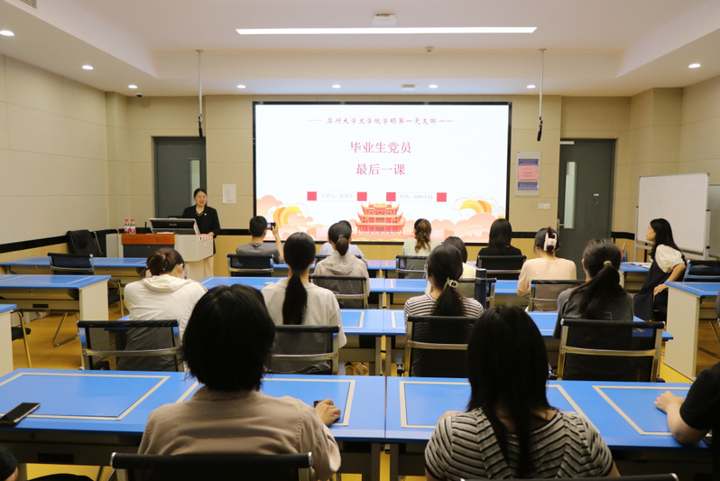 为深入贯彻中央八项规定精神学习教育,持续推进党风廉政建设,营造风清气正的良好政治生态,进一步加强毕业生党员思想政治教育,引导和鼓励毕业生党员坚定理想信念,苏州大学文学院研究生学硕第一党支部特别组织了毕业生党员最后一课。本次党课由我院党委书记宋清华老师亲自授课,宋书记长期深耕党建领域,在党的理论研究与实践指导方面有着深厚的造诣和丰富的经验,多次精准解读党的重要方针政策,为学院党建工作指明方向,推动学院党风廉政建设不断迈向新高度。在本次党课中,宋书记以“做新时代挺膺担当的奋斗者”为主题,围绕“新时代”“挺膺担当”“奋斗者”三个关键词展开,结合实际案例与工作要求,为全体毕业生党员深入解读八项规定内涵,剖析违规行为危害,明确贯彻落实路径,激励毕业生党员结合历史使命与青年责任,以赤子之心投身强国建设。
