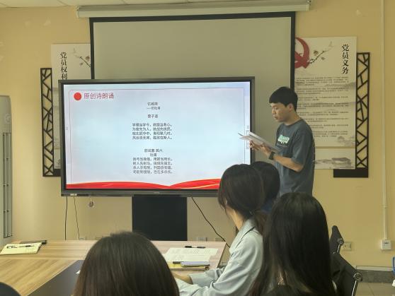 最后,教工第一党支部书记陈昌强对两首诗作进行点评,发表感悟,从古诗到新诗,从古代到现代,中国的革命传统之中永远不缺乏勇往直前的奋斗意志。革命先辈们用热爱和生命铸就了不朽的丰碑,他们的故事如同璀璨的星辰,照亮着后人前行的道路。