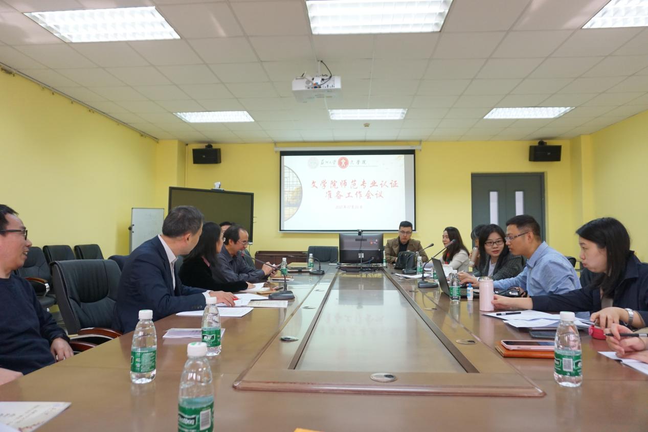 10月26日上午,苏州大学文学院举行了师范专业认证准备工作专项会议。文学院院长曹炜、党委书记孙宁华、党委副书记阴浩、副院长束霞平、副院长周生杰、综合办公室主任赵曜、学生工作办公室主任纪金平、团委老师、中教法教研室教师缪葵慈、高群、管贤强、专业教师何薇、张春晓、刘芊玥等出席了本次会议。