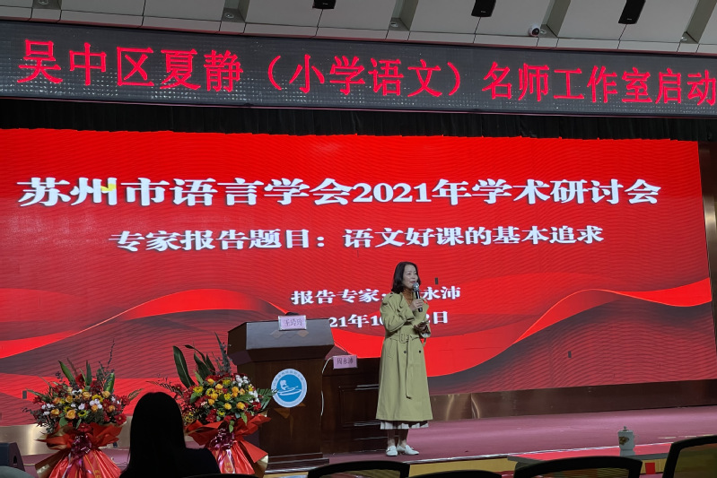 开幕式上,吴中区越溪实验小学校长夏静、苏州市语言学会会长王建军分别作了热情洋溢的致辞。
