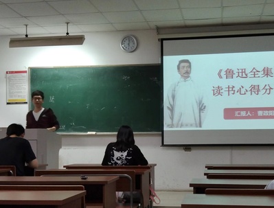 活动伊始,主持人唐悦蓝同学讲解了《鲁迅全集》,并阐述了了解《鲁迅全集》的必要性与阅读意义。随后进行同学们的分享交流,每位分享者分别上台演讲,并展示了自己制作的PPT。
