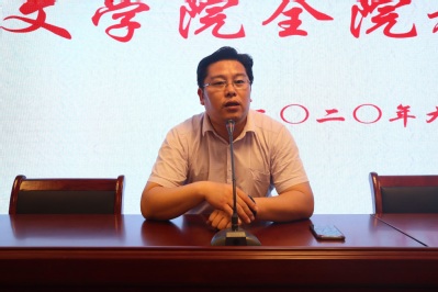 阴浩副书记简要介绍了2020年文学院的招生情况,志愿录取率达到了百分之百,第一志愿录取率较往年也有所增长。在学风建设、专业改革方面取得了新的成效。在就业方面,文学院本科生就业率还有待提高。阴书记指出应引导百分之七十以上本科生考研,竭力提高本科毕业生的就业率。阴书记希望全体教职工践行立德树人的初心,牢记为党育人、为国育才的使命,共同打造文学院全员、全过程、全方位的教育格局。