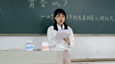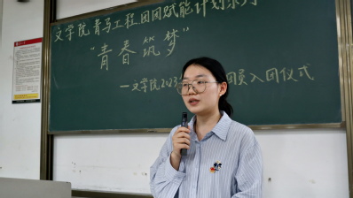 5月26日18:30,由苏州大学文学院学生工作办公室、文学院团委团校主办,22级行政二班全体团员、青马工程全部成员参与的文学院青马工程、团团赋能计划系列之“青春筑梦”——文学院2023年新发展团员入团仪式于二期文综楼1001#1301顺利举行,赵丹同学担任主持人。