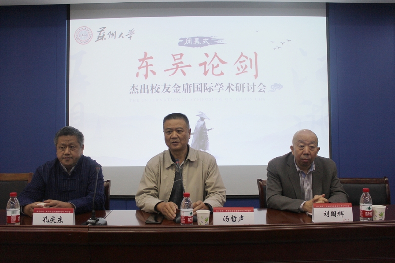10月26日上午,“东吴论剑:杰出校友金庸国际学术研讨会”在苏州大学独墅湖校区正式开幕。此次研讨会由苏州大学主办、苏州大学文学院承办、中国武侠文学学会协办。来自海内外六十余位学者以及苏州大学师生们共同参加了此次学术盛会。