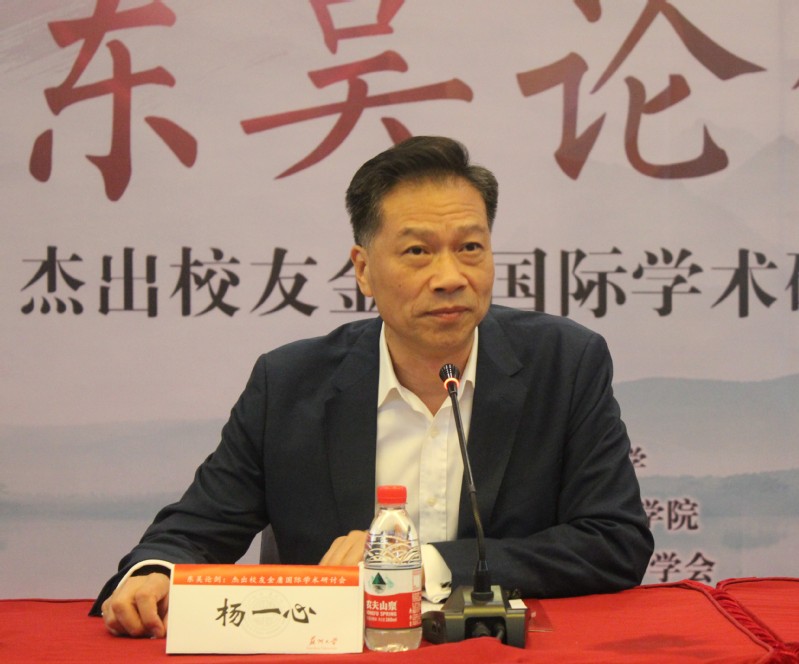 杨一心副校长在致辞中首先对会议的召开表示了祝贺,对嘉宾的到来表示了热烈的欢迎。他简要介绍了苏州大学的基本情况、苏州大学文学院近年来的发展。杨一心在致辞中还特别提到了金庸先生与苏州、苏州大学的渊源,深情回忆了2000年金庸先生为苏州大学题写贺词、2007年再度到访苏大的往事。