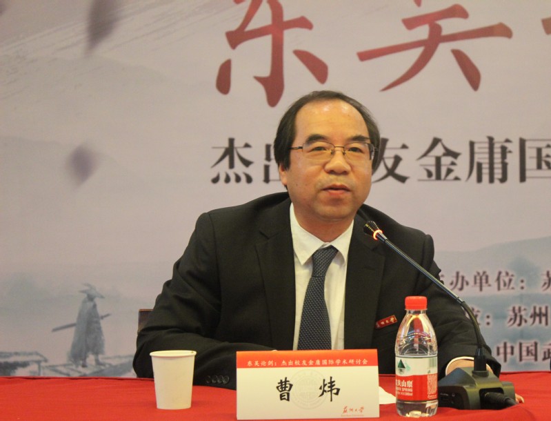 苏州大学特聘教授、文学院院长曹炜介绍了文学院学科建设情况,并在致辞中表达了对金庸先生的崇敬,对到场嘉宾的深深祝福。