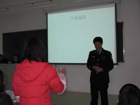 12月12日下午两点,苏州大学文学院与独墅湖公安分局知识竞赛在苏州大学文科综合楼举行。此次竞赛以“构建高教区和谐,贯彻十七大精神”为主题,由青管部与独墅湖公安分局共同主办。双方各派三名代表进行单人比赛,设一、二、三等奖以及观众参与奖。虽然天气阴冷,细雨霏霏,但仍有众多同学及公安干警到场观摩比赛,现场气氛活跃。