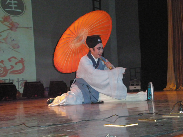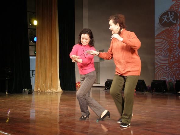 讲话结束后,著名京剧表演艺术家朱雅女士首先为大家带来一曲铿锵豪放的京剧选段《贵妃醉酒》,铿锵豪放的唱腔将杨贵妃从初醉到醺醺醉意细致入微地表现出来,博得了现场同学的掌声阵阵。而著名的锡剧表演艺术家倪同芳所带来的《沙家浜 风声紧雨意浓》则展现了南国地方戏曲的流畅之美。她的声音以一种婉转缠绵的形式登场,全场同学无不啧啧称奇,沉浸在开头清脆而缓慢的旋律里。随后旋律渐渐跳跃起来,跌宕豪爽的唱腔、清晰而有力的吐字又不输京腔的豪迈之势。此曲终了,同学们还意犹未尽之时,朱栋霖教授又将著名的昆剧表演艺术家石小梅、孔爱萍请上台来,为大家演绎《牡丹亭•惊梦》。两位女艺术家未着戏服,却清晰地展示了她的身段、手势、唱腔。两位女艺术家首先“化身”《牡丹亭》中的杜丽娘与柳梦梅在梦中相会,无论是“好景艳阳天,万紫千红尽开遍”,还是“满雕栏宝砌,云簇霞鲜”都在那柔曼绵长的唱腔与翩翩起舞的兰花指中体现得淋漓尽致。随后,孔爱萍老师又为大家单独献唱《牡丹亭•游园》,依旧没有艳丽的妆容与服饰,却将那访春少女感动情丝之意透过明快的旋律与柔美的动作展现出来。