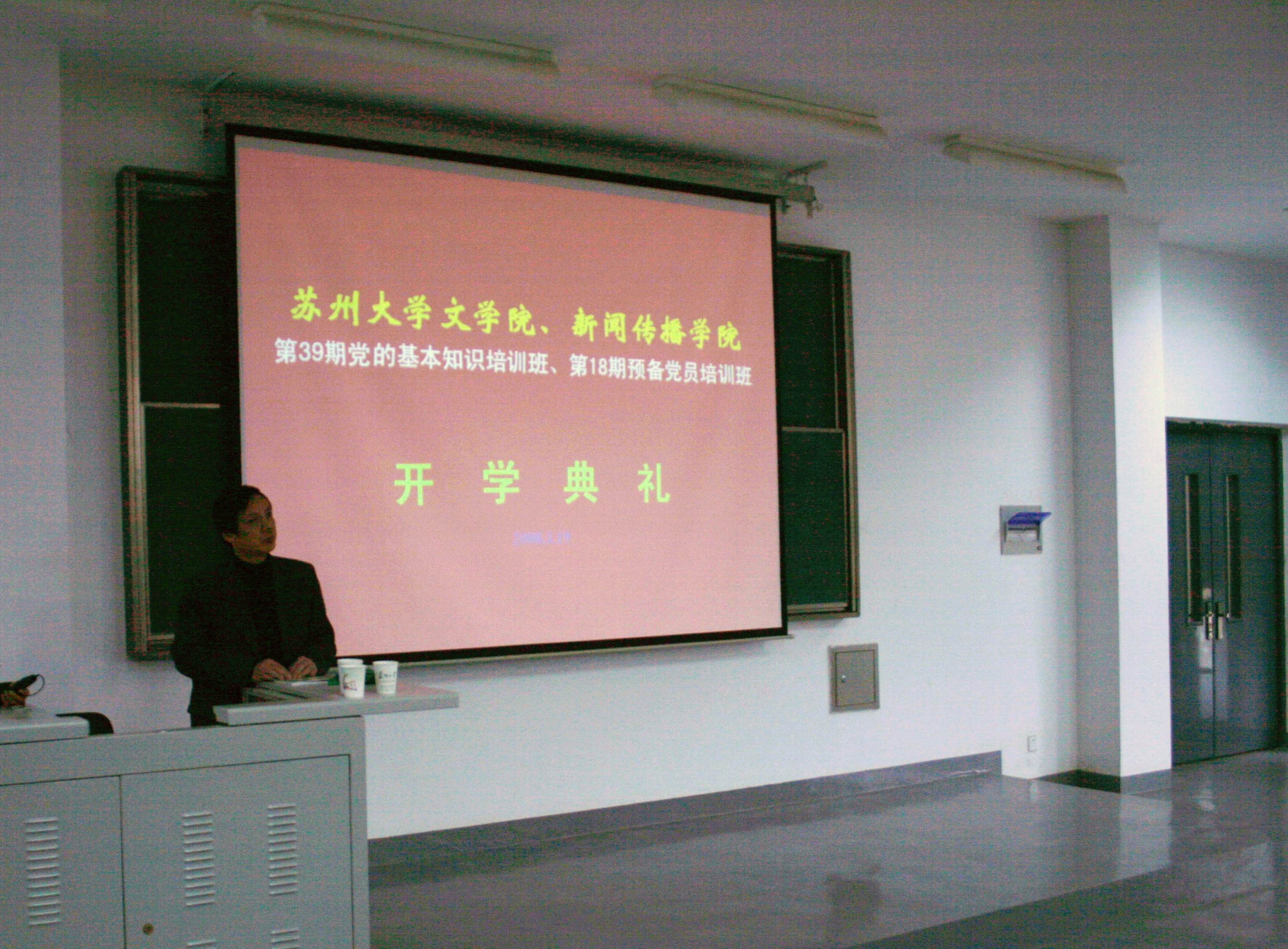 三月十九日下午两点三十分,苏州大学新校区文科综合楼1101教室座无虚席,苏州大学文学院第39期党的基本知识培训班暨第18期预备党员培训班开学典礼准时举行。