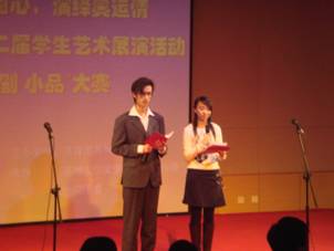 相比《拉丁美洲》的深刻,计算机科学与技术学院的小品《网友见面》则用诙谐幽默使观众捧腹不已。小品别出心裁地采用双簧的形式,其默契的配合令观众们啧啧赞叹!演员们用夸张的肢体表演和搞笑的台词将网友见面前后心理的巨大落差表现得淋漓尽致,期间台下笑声掌声不断,出人意料的结局更是将全场的气氛推向了高潮!