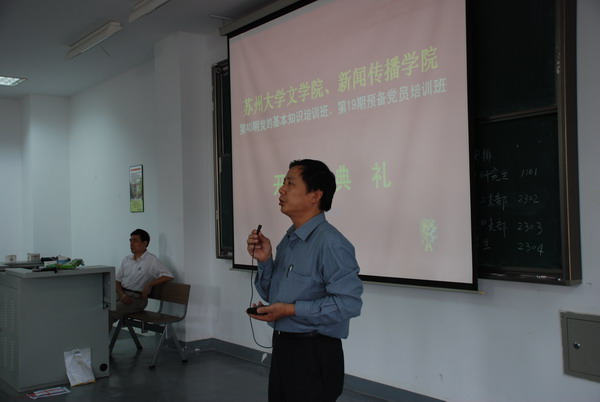 10月22日下午文学院分党校举行了第40期入党积极分子培训班暨第19期预备党员培训班开学典礼。第40期入党积极分子培训班共有学员190人,第19期预备党员培训班共有学员110人。下午2:00会议开始,分党校校长王六一书记首先在典礼上做动员。他强调,参加党校学习不只是为了得到一张结业证书,要通过学习提高自己对党的认识,提高自己的政治思想水平。学习中要端正学习态度,遵守学习纪律,真正学好党的基本知识,真正领会党的“十七大”精神。接下来,苏州大学党校常务副校长倪祥保教授作了题为“社会主义核心价值与共产党人修养”的专题报告。报告分三个部分:一、什么是社会主义核心价值(主流价值),二、人类核心价值的历史发展,三、社会主义核心价值观与文化素养。报告赢得了全体学员热烈的掌声。