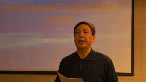 2009年5月20日下午2:00,学院在文科综合楼5339会议室隆重召开学院领导班子分析检查报告评议大会。参加评议大会的有学院教师代表、党员代表、学生代表、离退休教师代表等共74人。