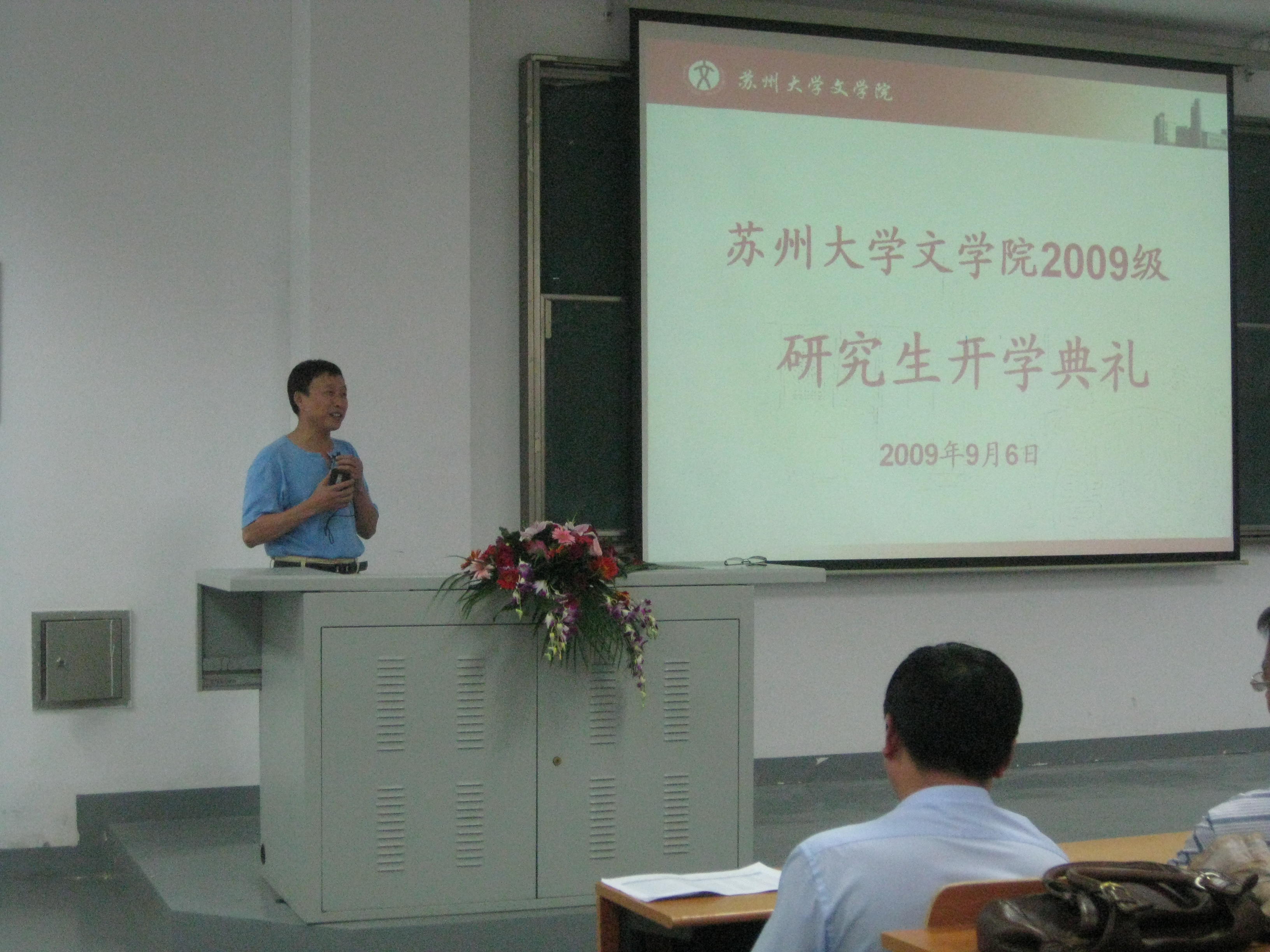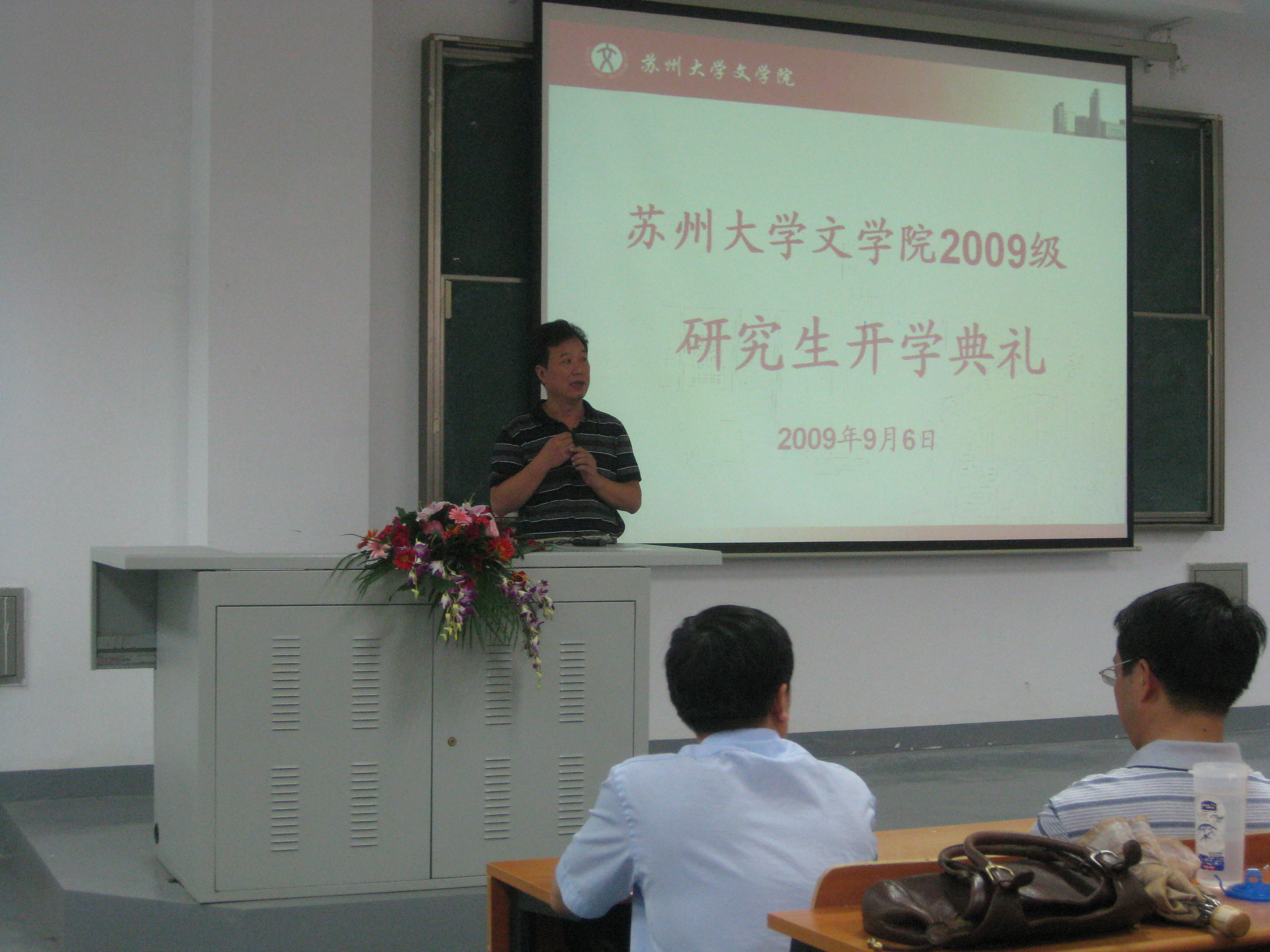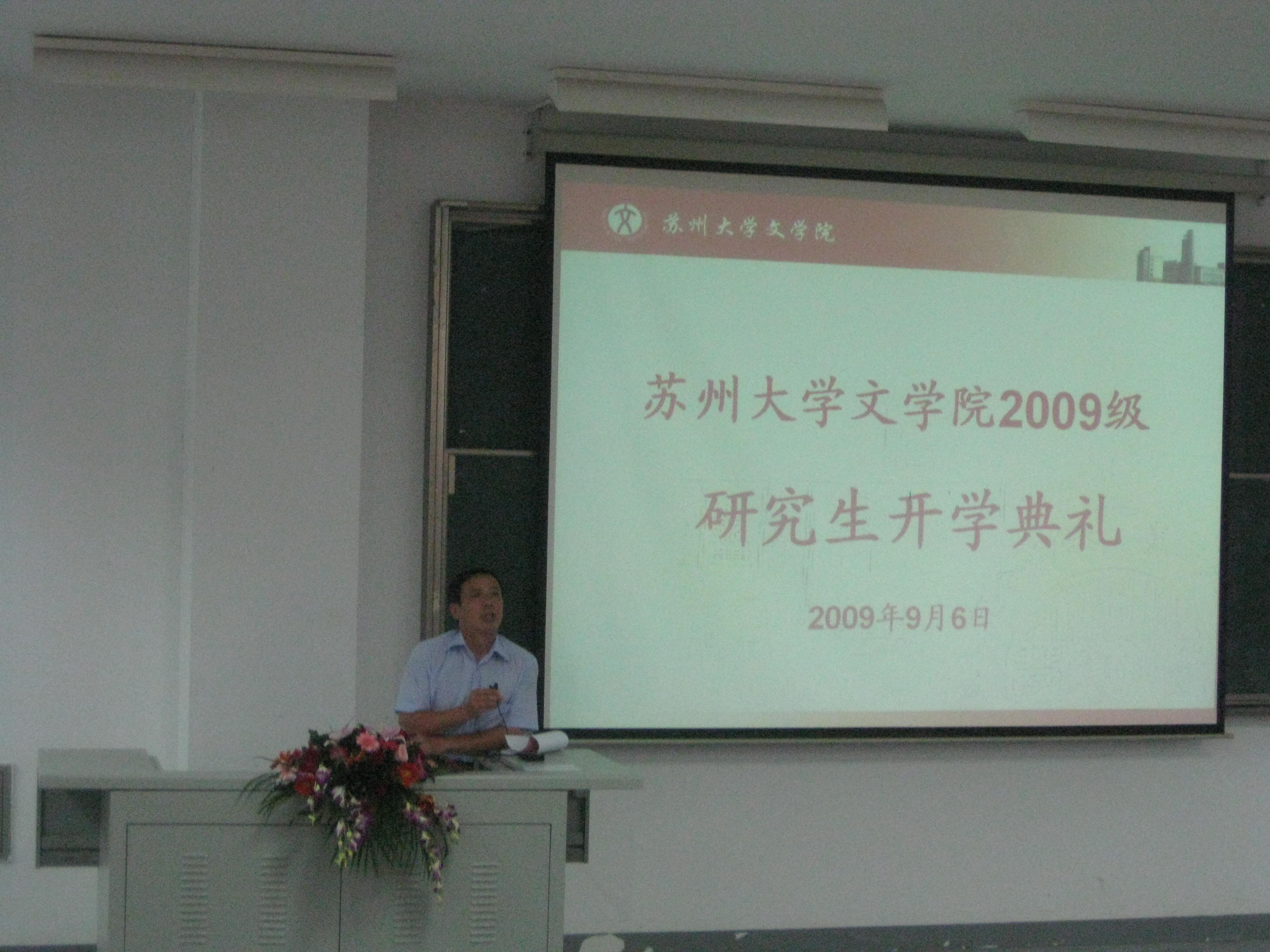 2009年9月6日上午10:00于1001-1101教室,文学院2009级研究生新生开学典礼隆重举行。王六一书记主持了会议。