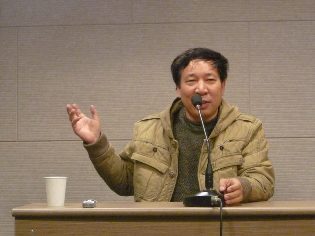 虽然天气阴沉,气温下降,但是会场座无虚席,气氛热烈。王尧院长幽默的开场和极具亲和力的笑容,把大家带入了文学的世界,他为大家引出了第一位主讲嘉宾――江浙才子陈众议。陈教授称最近正着眼于作家,谈到传统文学原理被解构,文学处于一种众声喧哗的状态时,他认为正是由于这样,在经典消解之后谈经典就显得十分有必要。陈教授富有学术性和逻辑性的讲话顿时吸引了大家,他把世界文学的走向定义为:从上到下,从大到小,从宽到窄。从上到下即是从宇宙慢慢进入人间,无论是中国还是外国,都是如此;从大到小不仅是说作家的胸怀笔触从宇宙缩小到一个地球,一个国家,一条街道,一个办公室等,更是说作家从发现大我到发现了小我;从宽到窄即是说艺术和文学最终成为感情教育的载体,正如鲁迅先生为中国文学增加了深度。此后,陈教授还列举了众多文学作品,也包括国内的一些,与观众进一步探讨了文学的问题。