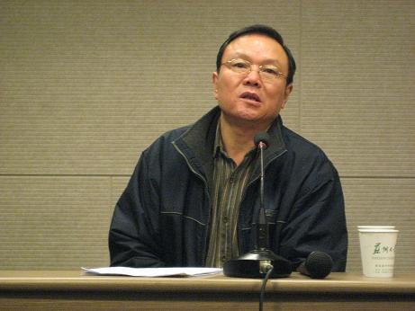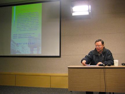 王院长主持了这次讲座,向同学们介绍程光炜教授。程教授现任中国人民大学文艺研究所所长,中国现代文学研究会常任理事,主要从事中国现当代文学研究,研究领域涉及文学史,文学思想,中国文学史,已出版学术专著9本,先后在国内核心刊物和国外学术杂志,如《文学评论》、《文艺报》、《中国现代文学研究丛刊》、《新文学史料》等上发表论文200余篇。