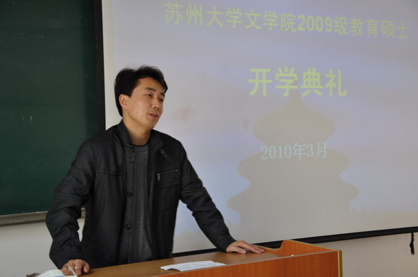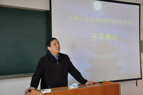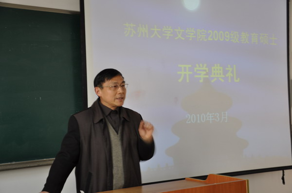 3月20日下午,文学院2009级教育硕士开学典礼在北校区工科楼409举行,党委王六一书记、黄镇伟副院长、逢成华副院长出席了典礼并致辞。