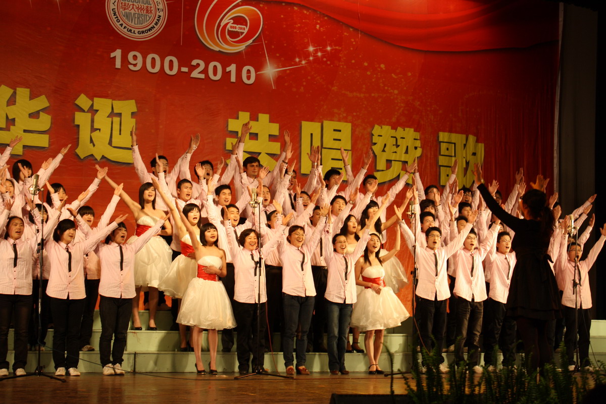 文学院此次合唱的曲目是《越来越好》。从挑选演唱人员,确定站姿站位,定制演出服装,到每个动作的设计,文学院师生都积极投入,前后共排练了近三周的时间。《越来越好》优雅动听的和声,活泼欢快的旋律,轻松和谐的曲调,把大家带进了欢庆母校110周年华诞的喜庆气氛中。