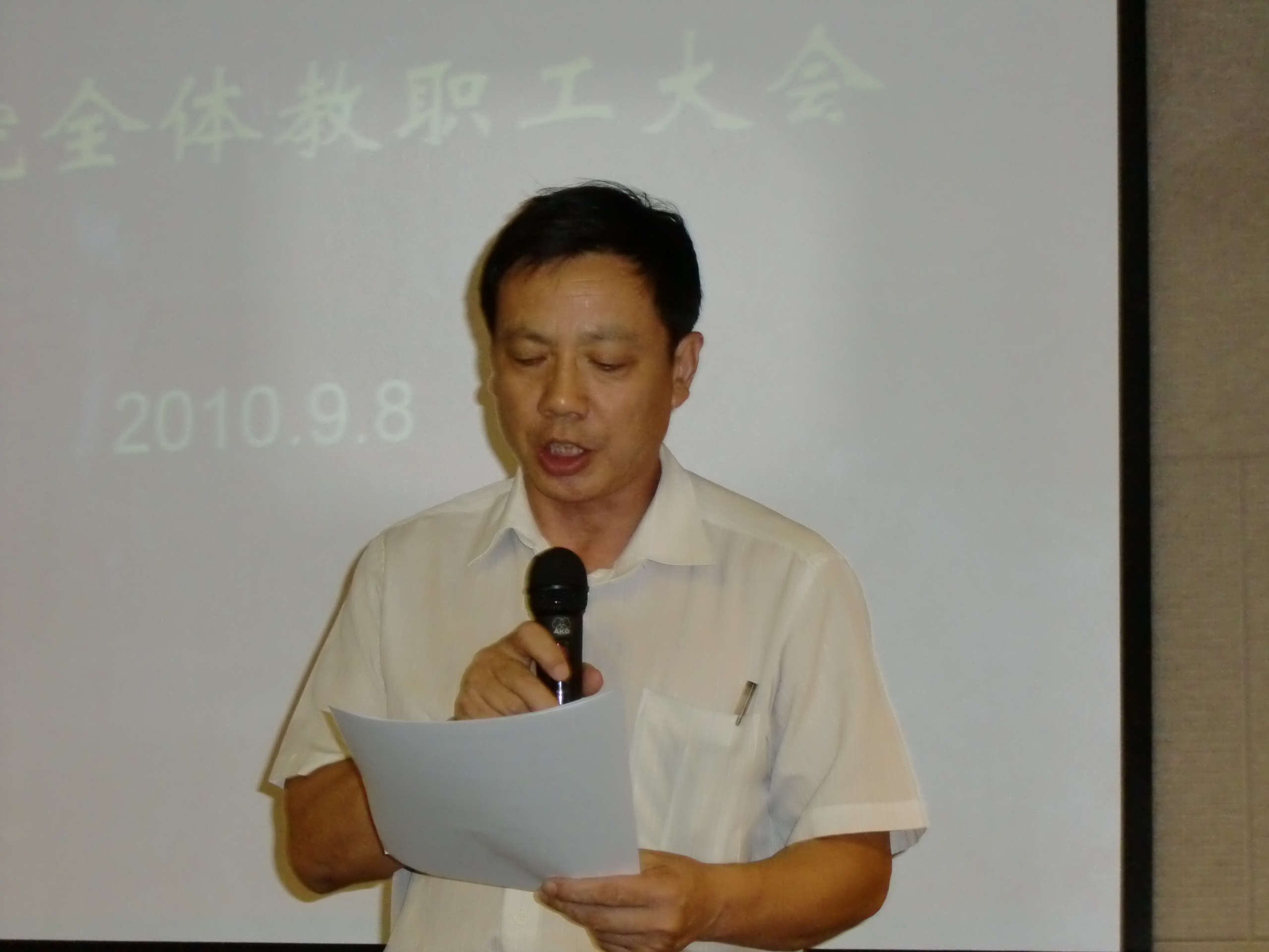 随后,王尧院长也在会上作了重要发言。王院长首先浅谈了在哈佛大学调研时的经历,对该校非常高的办事效率表示赞叹,建议要合理吸取哈佛大学的办学经验。随后王院长还就四个方面的工作做了重要阐述:既要适当引进,也要自我拼搏,以此加强我院师资队伍建设;发挥特色、调整结构、充实内涵,走国际化道路;迎接重点学科的中期检查工作;以特色专业点的申报为契机,进行教学改革。王院长鼓励全体教职工秉承教书育人的原则,为学院各方面的建设贡献力量。