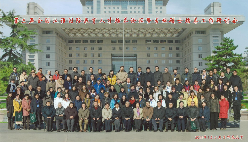 “全国汉语国际教育人才培养论坛暨专业硕士培养工作研讨会”是汉语国际教育领域最高级别的会议,由北京师范大学国际推广新师资培养基地主办,每年一届,今年是第三届。出席本次会议的有十届全国人大常委会副委员长、中华文化发展促进会会长许嘉璐先生、北京师范大学党委书记刘川生女士、国家汉办主任许琳女士,全国汉语国际教育领域的专家云集,大家就汉语国际教育人才培养过程中遇到的各种新问题展开了认真而激烈的探讨。