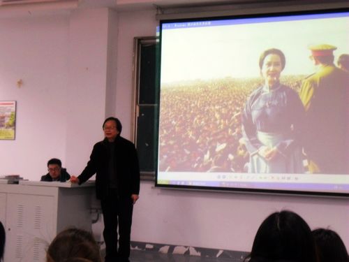 讲座正式开始之前,主持人朱教授向大家介绍了黄孝慈老师。黄老师是江苏省京剧院名誉校长,中国戏剧梅花奖・二度梅得主,国家文华奖得主,全国首届德艺双馨艺术家,并且还是我国中共十六大十七大的代表。黄老师还曾受到周恩来总理和江泽民主席的接见。