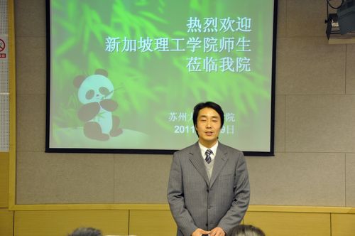 在讲座开始之前,我院逢成华副院长致欢迎词。首先,他代表文学院向来自新加坡理工学院的同学、老师们表示热烈的欢迎,并简要介绍了苏州大学文学院。文学院是苏州大学的龙头学院之一,也是建院历史最长的学院之一,设有硕士点、博士点,拥有1个国家文科基础学科人才培养和科学研究基地。逢院长还向大家介绍了本次中国之行的其他内容,例如推荐同学们待岗实习、实地考察等,另外还将开展一系列的中新学生交流活动,如体育竞赛、联欢晚会、辩论赛等。最后,逢院长祝愿大家在中国的实习成功,也希望新加坡理工学院能与苏州大学文学院常来常往,有更紧密的联系。