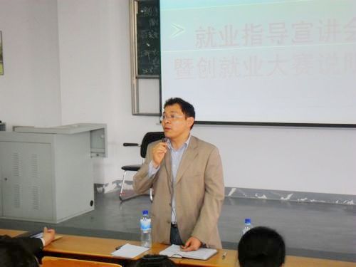 2011年5月5日下午两点,文学院就业指导宣讲会暨创就业大赛说明会在文综楼的1101召开。本次大会邀请了校招生就业处孙老师和我院党委副书记、副院长张健为大家进行创就业指导,并解读当前国家的就业政策。