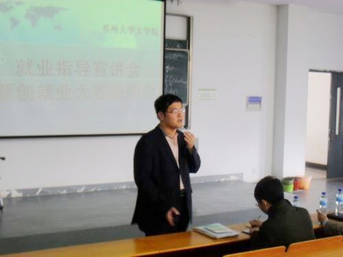 接着,张健书记也就创就业问题讲述了自己的看法。首先他说看见在座的即将毕业的同学们感觉很亲切。就业问题就是民生问题,今年中国有五十多万需要就业的人,这使得我们毕业生的就业更加辛苦和艰难,尤其是文科生,相对而言会更加难。张书记告诉我们,在这样的形势下,我们应该坚持先就业后择业的原则,但是很多同学会嫌弃开始就业的岗位不够好,当现实与理想的差距逐渐显示出来的时候,我们该如何定位,这是一个值得好好思考的问题。张书记说现在有一些同学报了村官,他觉得这是不错的选择。张书记还介绍了江苏省近期的就业政策,省里要招苏北志愿者700名以及在绵竹计划中招50名志愿者去绵竹地区进行为期一年的灾后重建工作。对于这些志愿者,省里有一定的补助,并在他们以后考研或考公务员时给予一定的优惠政策,张书记鼓励大家多多了解一些相关的就业政策,有助于自己明确方向。张书记说,如今的毕业生一定要学会转变就业观念,不一定要留在苏州或者江苏,也可以回自己的家乡或者自己熟悉的地方。还有就是,江苏教育电视台有一档栏目叫做《花落谁家》,有意向的同学可以尝试一下,别的同学也可以多看看节目,看看人家面试的题目,学习面试的技巧。还有一点很重要,如今社会上形形色色的机构很多,有些不法分子就是利用毕业生急于找工作的心理进行欺骗或诈骗,所以大家一定要提高警惕,加强防范意识。提到创业,张书记鼓励大家有想法就要去做,要去准备并进行市场调研,一定不要畏缩。最后,张书记说,四年了,爱也好,怨也罢,毕竟都过去了。如果大家有意见或建议,或者在求职过程中还有什么困惑,可以多与他联系沟通。他真心希望大家都能找到自己满意的工作。
