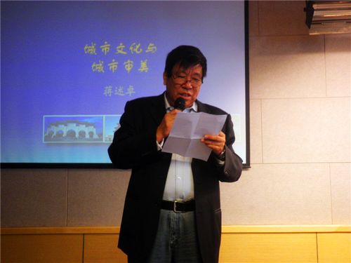 首先,蒋教授介绍了他研究城市文化的历程和近年来取得的城市规划等方面的成就。