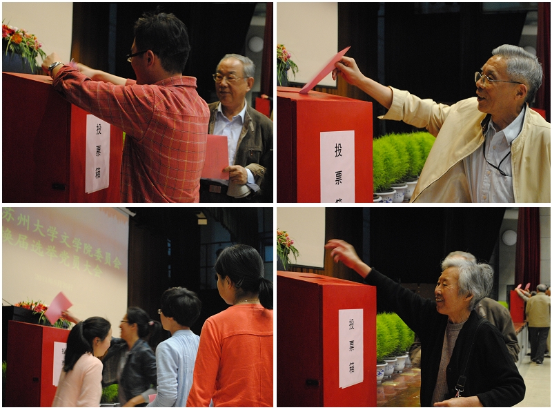 会议通过了大会选举办法和选举工作人员名单。总监票人黄镇伟同志宣读了校党委对本次文学院党委换届选举的批复,宣布党委委员名额,并介绍党委委员候选人及其简要情况。候选人是全院党员经过“两上两下”过程推荐产生的。院党委非常重视此次换届选举工作,成立了领导小组,召开党委委员会议,研究讨论换届选举工作并多次召开支部书记会议进行全面部署。全体党员在推荐过程中,积极参与,充分讨论、酝酿,最终推荐出六名党委委员候选人。经选举,王尧、王六一、王建军、汤哲声、张健等五名同志当选文学院新一届党委委员。