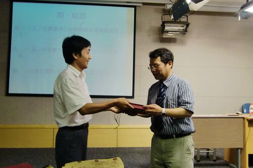 谢教授还通过原住民文化产业的具体发展案例及台湾饮食文化、节庆文化的介绍,向同学们勾勒出台湾文化产业发展的概貌。随后谢教授又通过衣食住行等几组照片向同学们展示了台湾的人文风情,并表示欢迎同学们到台湾来参观,领略台湾的文化特色。最后谢教授又以一副暗藏我院王尧院长的打游对联结束了本次演讲。逢副院长还代表学院向教授赠送了富有苏州浓郁特色的礼物以示友好。