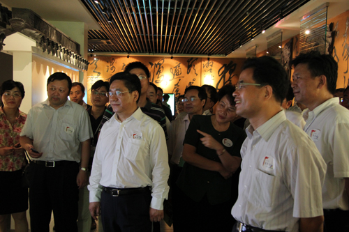 在实践中品味文化艺术,是增强学生对课程体悟的一个重要途径。开营仪式结束后,团队成员跟随领导一行参观中华诵读馆。同学们还看到了高中语文课本上“飞土,逐肉”的配图,其母体《斫竹歌》是农耕,即衣食丰足的前提。尽管在五六千年前,在人类语言功能不够发达、词语表达能力有限的时代,《斫竹歌》却能生存于群体劳动之中,成为劳动者的集体号角。一名农民歌手曾说:“唱了这首歌,力气就来了,前呼而后拥。力似排山倒海,而不是让人忽悠悠的去昏迷其中,也不是纤巧以异思,去打动另一种事物。”古代人民的智慧在眼前生动展现,同学们在参观的过程中不但能够领略民歌经久不衰而又质朴的美感,还能将课堂所学融入生活,为将来奋斗做好心灵上的铺垫。